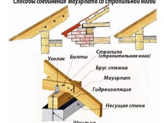 Danach sammeln Sie das Traversensystem. Die Sparrenbeine werden mit Metallecken und selbstschneidenden Schrauben am Mauerlat befestigt.
