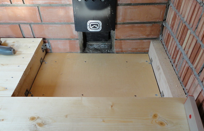 - Installation von Schalungsplatten. Es sollte 30-60 cm über dem Boden aufsteigen;