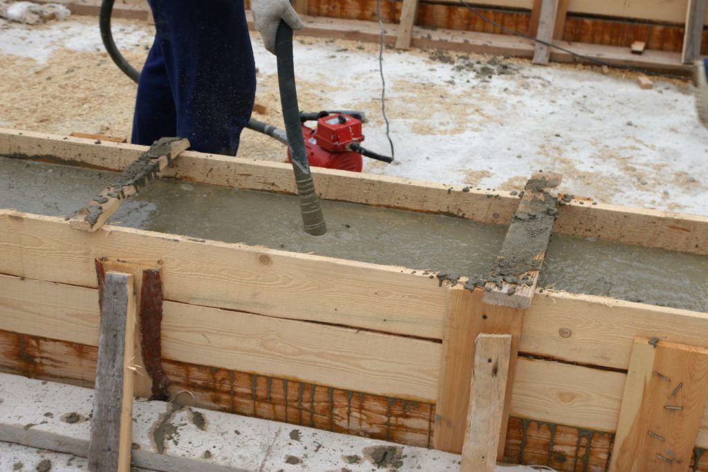 - Die Schalung wird normalerweise in 5-14 Tagen entfernt, abhängig von der Lufttemperatur. Um Verformungen in den ersten Tagen zu vermeiden, sollte die Basis 3-4 mal täglich mit Wasser gegossen werden. Um das Fundament vor dem Ausfallen von Ton und Schutt zu schützen, wird ein Blindbereich von 1 m Breite gegossen, der nach 28 Tagen zu der gewünschten Festigkeit aushärtet.
