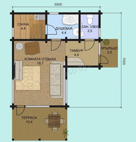 Einstöckiges 6x4m Bad mit Terrasse