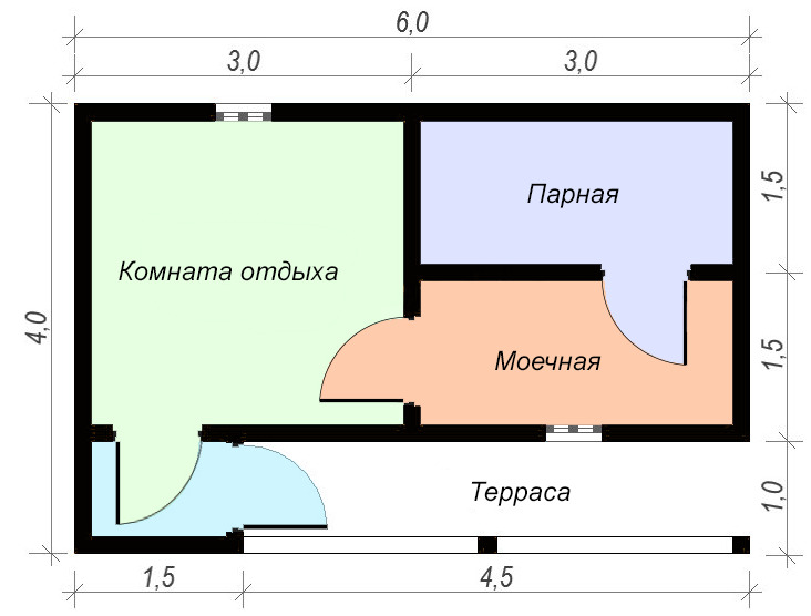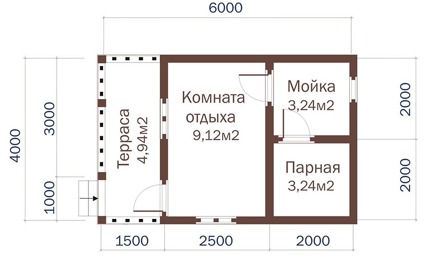 Das Layout des Bades kann durch Austausch der Türen geändert werden. Es sollte beachtet werden, dass Der direkte Zugang zum Aufenthaltsraum ist keine gute Option.. Tatsache ist, dass wenn du die Tür öffnest, die Kälte hineingeht. Die Terrasse oder der angeschlossene Vorraum hilft, den Mangel zu beseitigen.