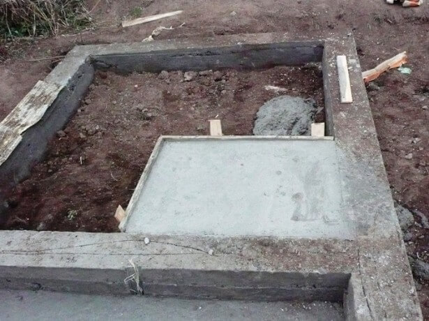 Achten Sie darauf, im Fundament Löcher mit 8-12 cm Durchmesser zu machen, und bauen Sie ein separates Fundament für den Ofen, wenn Sie das Heizgerät verwenden möchten.