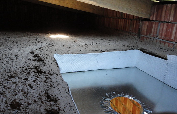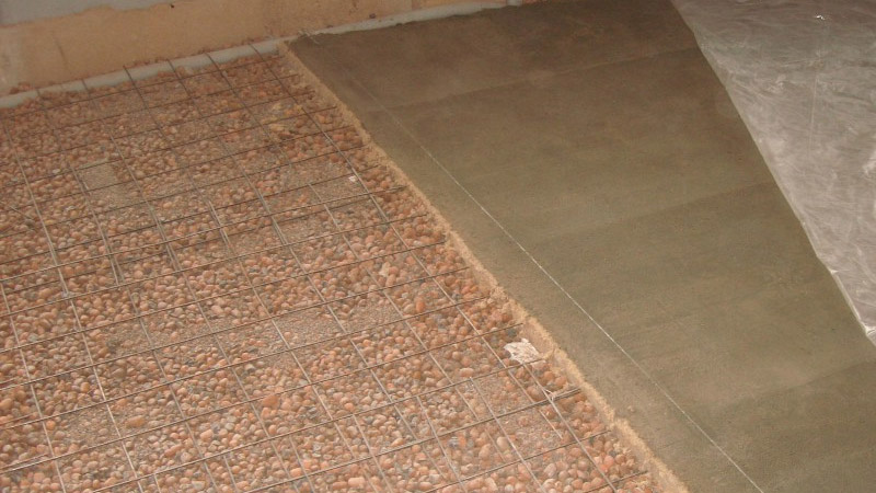 Um im Bad nicht zu kalt zu werden, empfiehlt es sich, den Boden unter dem Boden mit einer Schicht Blähton und Schlacke zu bedecken.