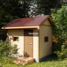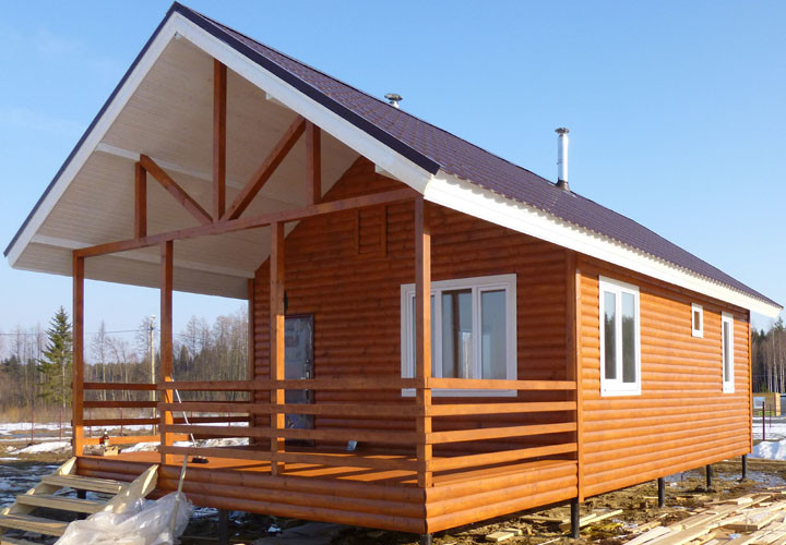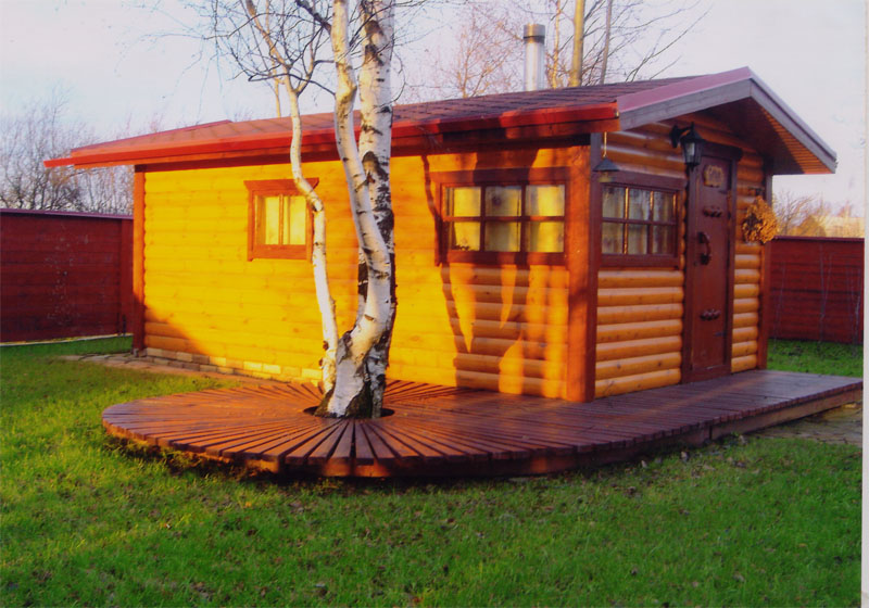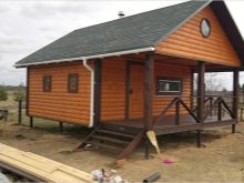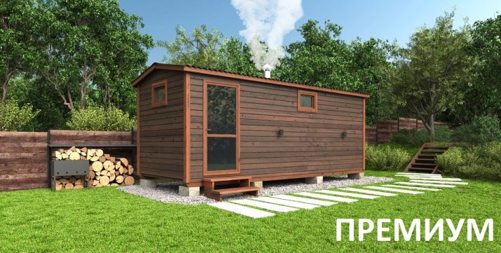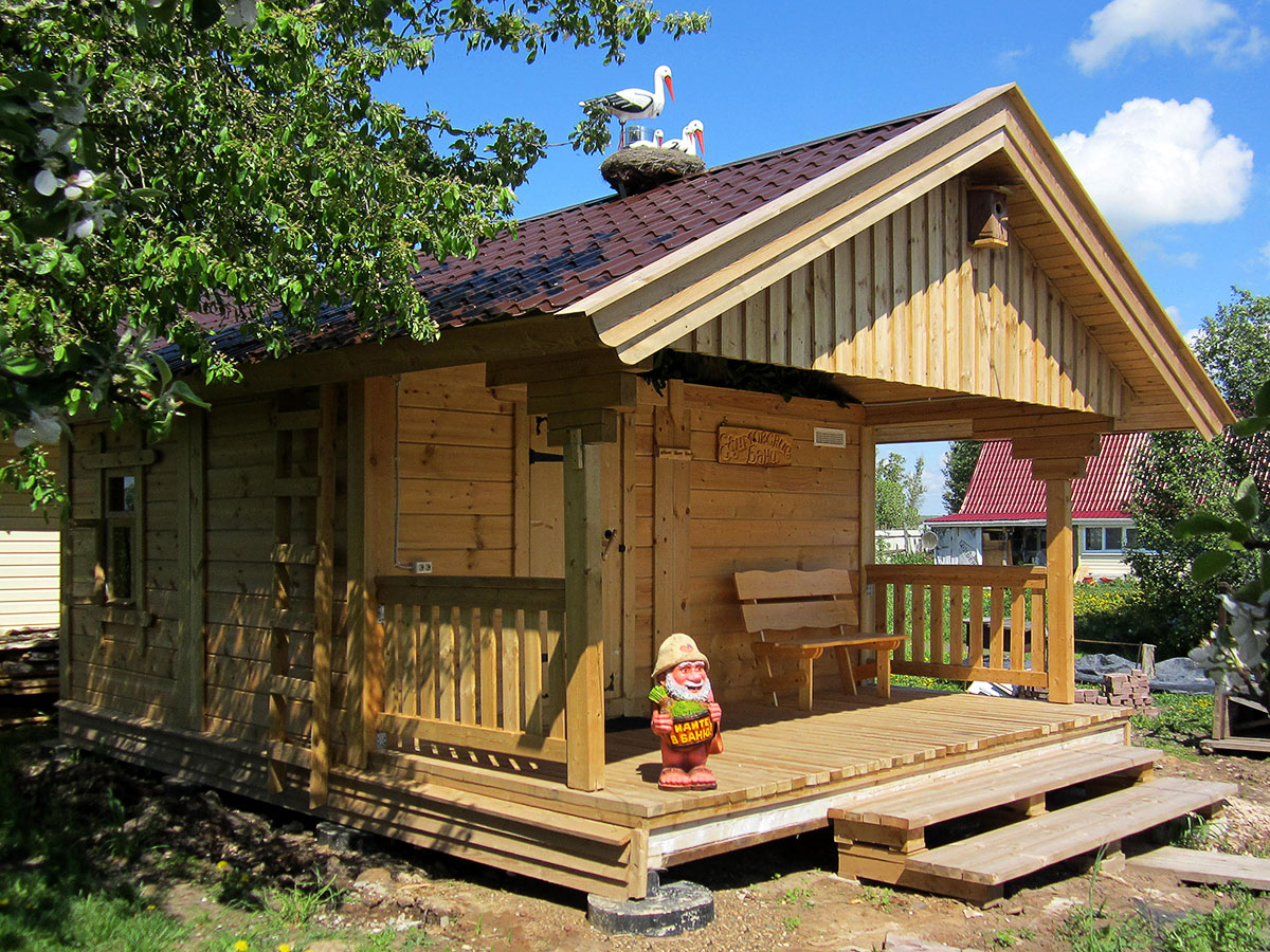 Schöne Rahmenbäder können in unterschiedlichsten Ausführungen ausgeführt werden. So sieht ein Bauwerk mit einem nicht zu steilen Dach aus, das über die Fassade geschoben wird. Vor der Tür befindet sich eine Art Plattform, auf die man eine kleine Leiter klettern muss. Das Designkonzept ist eindeutig im Sinne maximaler Natürlichkeit des Gebäudes gebaut. Viele Eckbadewannen, auf Rahmentechnik gebaut, sind mit Abstellgleis fertiggestellt.