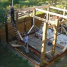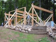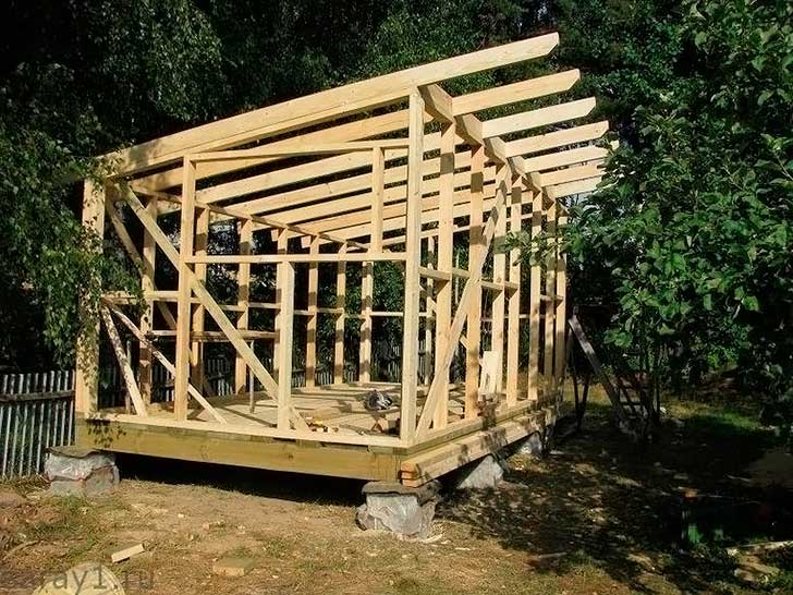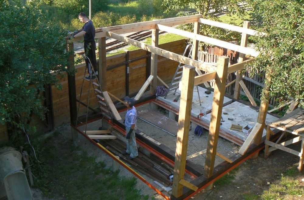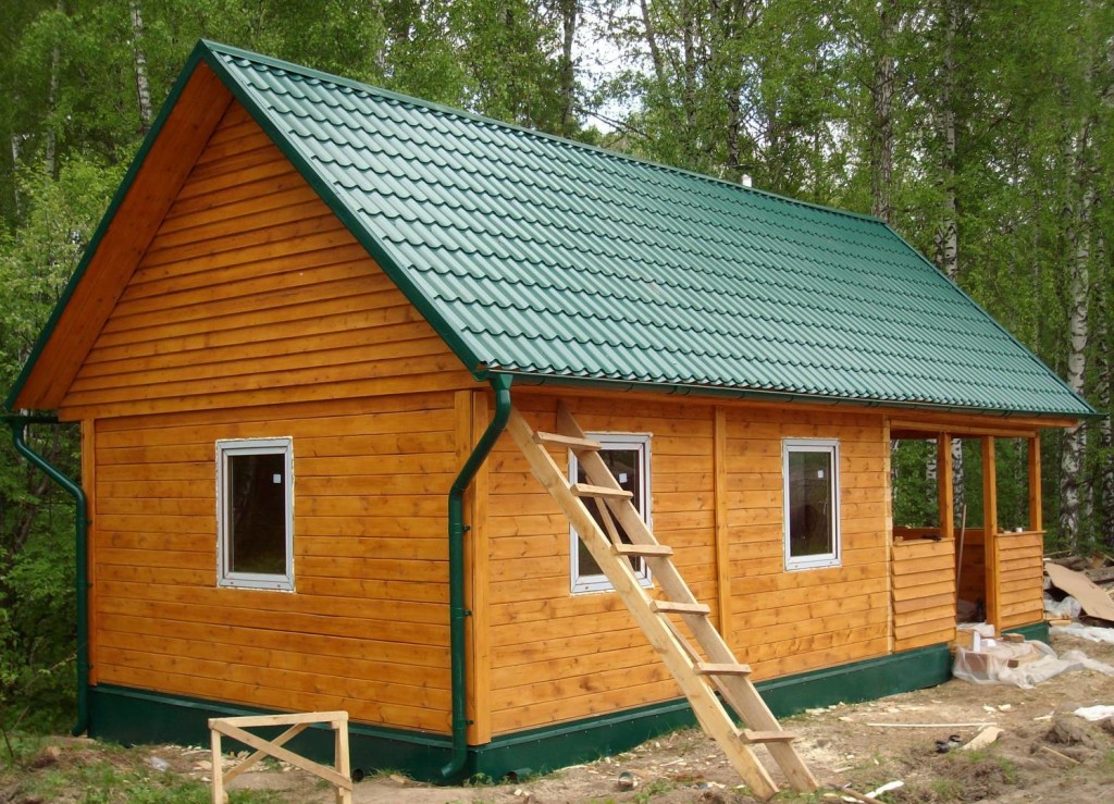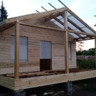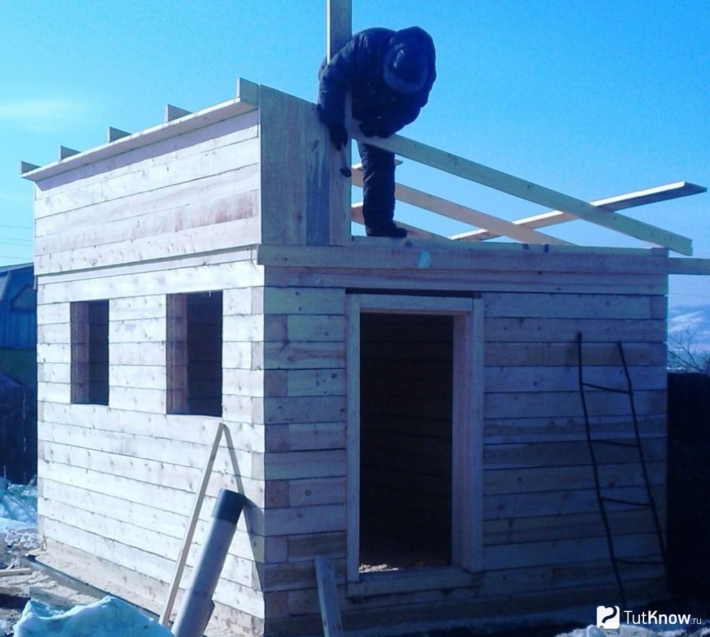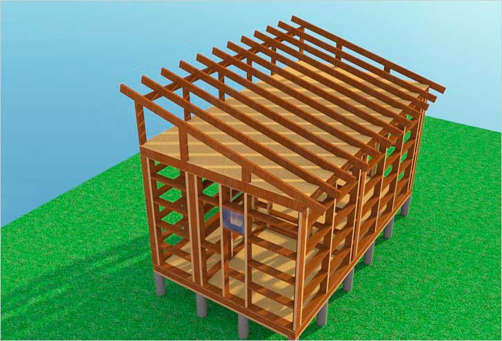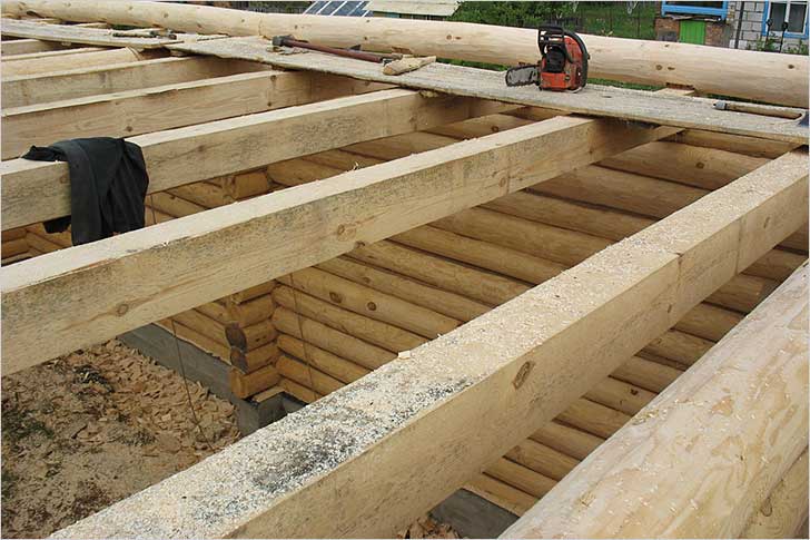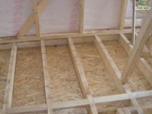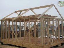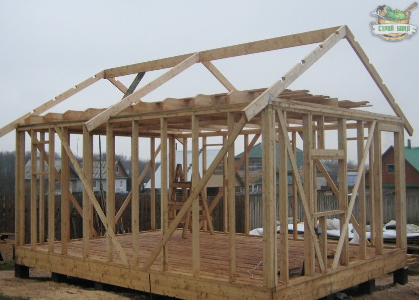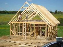 Alle Holzelemente werden vor dem Einbau gründlich getrocknet. Sparren werden auf dem Boden gesammelt und dann abwechselnd angehoben und über die Gestelle des Rahmens gesetzt. Dach tun nur in belüfteter Form.