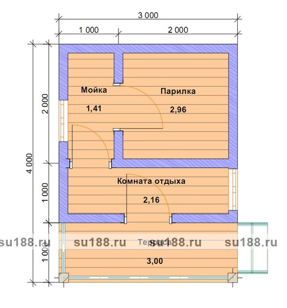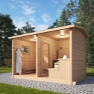 Am einfachsten ist es, wenn Dampf, Dusche, Boiler und Ankleideraum kombiniert werden. Aber ein solcher Schritt ist nur für Mini-Strukturen oder Badehäuser akzeptabel, weil es unmöglich ist, die Temperatur wie erwartet zu verteilen. Deshalb versuchen sie, auch mit kleinsten Dimensionen, selbst wenn kleine, aber autonome Räume entstehen. Bad 3x4 m kann gut mit einem kleinen Kessel oder einem Holzofen beheizt werden. Einige Designer finden sogar die Möglichkeit, sie mit einer Veranda oder Terrasse zu ergänzen.
