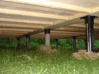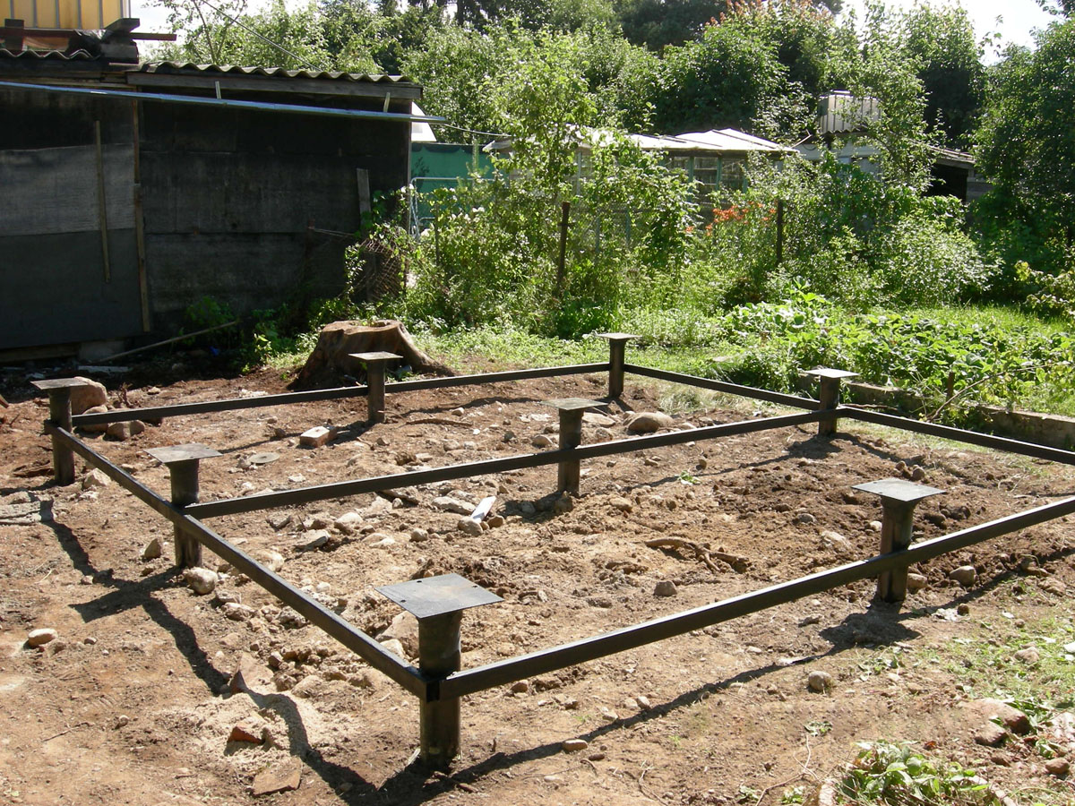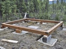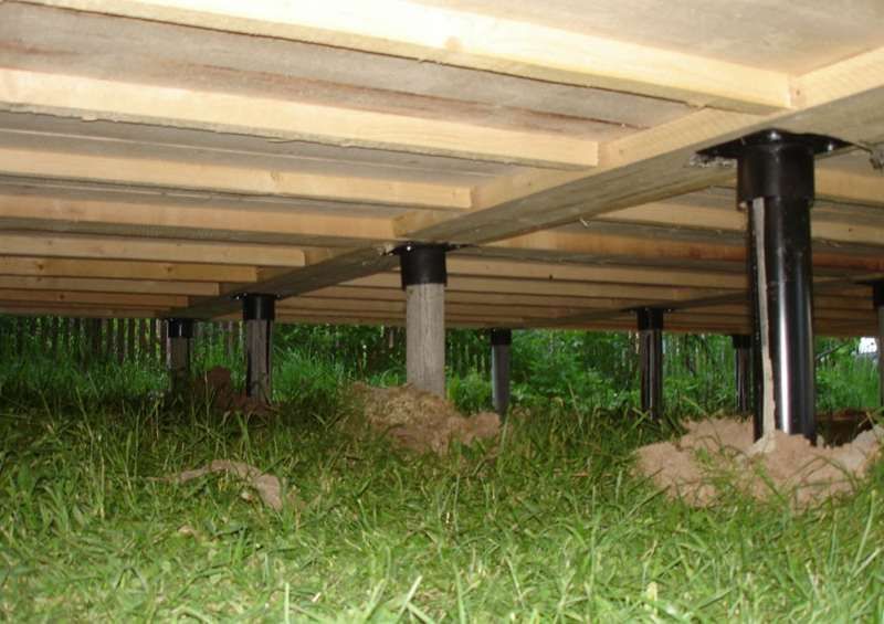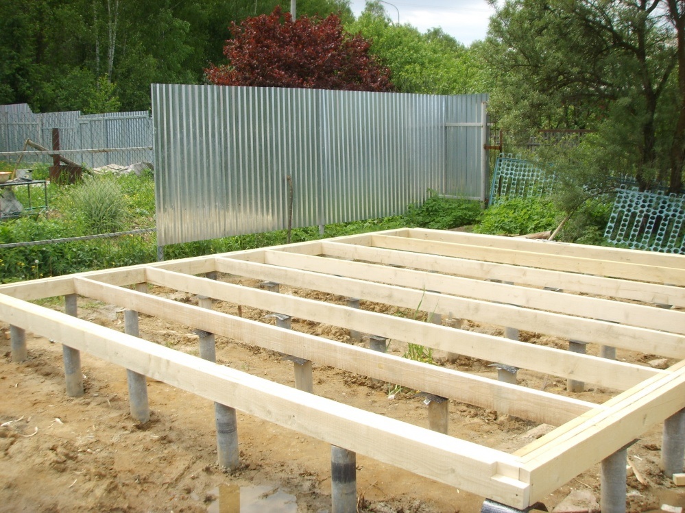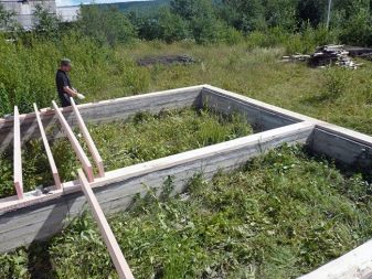 Stellen Sie sicher, dass Sie auf einer Ebene mehrere Balken anlegen, die mit Pfählen um den Umfang gekürzt werden. Solche Systeme funktionieren gut auf Lehmböden, wo sie seit vielen Jahren stabil dienen.