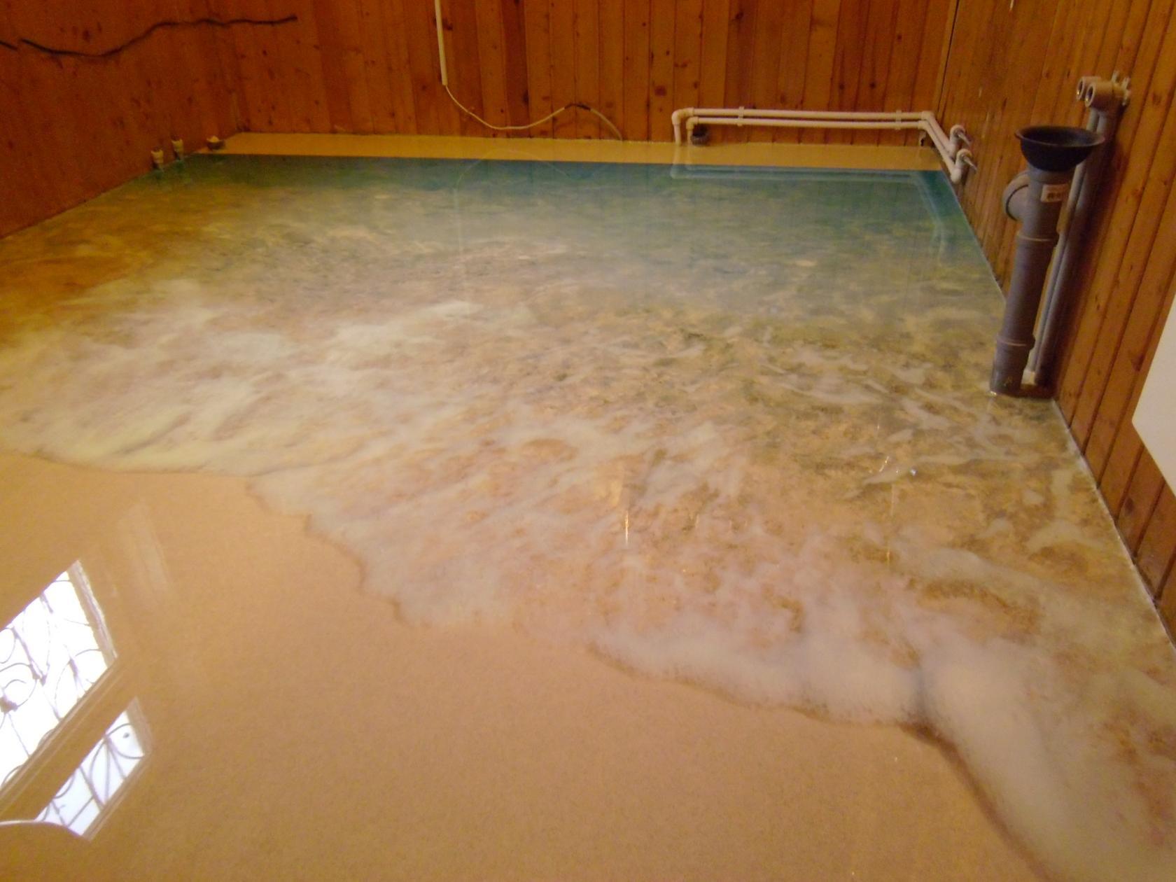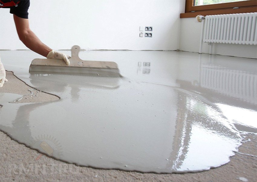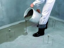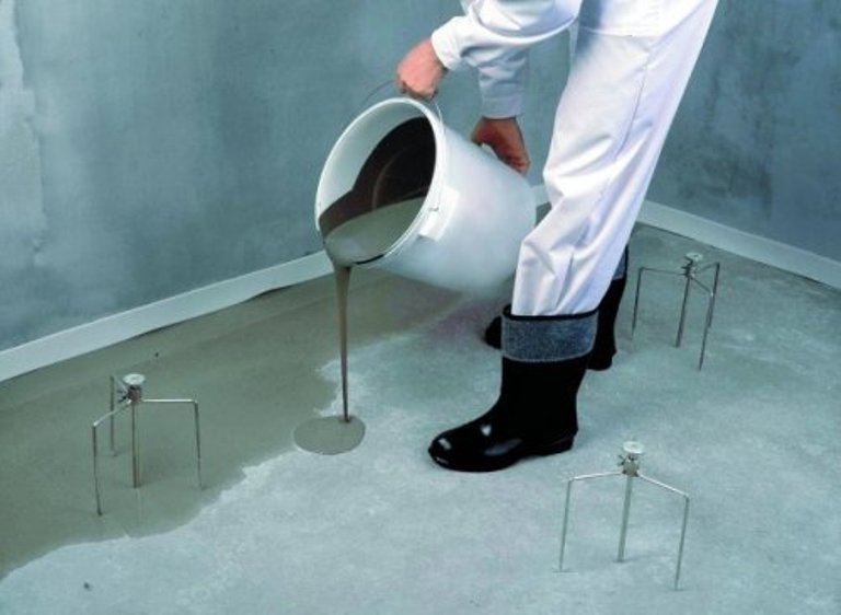 Aber es gibt auch objektive Schwächen: Zum Beispiel erstarrt der selbstnivellierende Boden erst nach mehreren Tagen, wenn Sie sofort auf dem Holzboden gehen können. Es besteht ein hohes Risiko von Kratzern und Schmutz, und die Kosten einer solchen Beschichtung sind sehr hoch. Es wird empfohlen, jeden Badboden mit einem Gefälle zum Abfluss zu verlegen, damit sich kein Wasser und keine Seifenlauge in alle Richtungen ausbreiten kann. Selbstnivellierender Boden kann horizontal (ohne Gefälle) oder auf einer bereits geneigten Grundfläche gegossen werden. Die erste Option erfordert eine sorgfältige Versiegelung des Schnittpunkts des Bodens mit den Wänden und die zweite ist schwieriger durchzuführen, sondern leitet die gesamte Flüssigkeit auf einmal in die richtige Richtung.