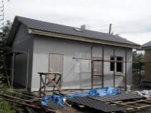 Dann ist es Zeit, Giebel aus orientierten Platten oder hochwertigen Brettern zu machen.In den meisten Fällen lohnt es sich, sich auf das einfachste Pultdach zu beschränken, das schnell und ohne große Schwierigkeiten durchgeführt wird. Aber wenn Sie ein völlig originelles Design wählen, wird nicht jeder Spezialist in der Lage sein, die Arbeit korrekt und innerhalb der vorgegebenen Zeit zu erledigen.