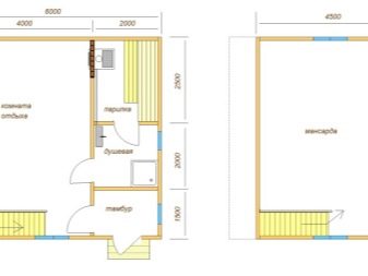 Bei den meisten Projekten werden Satteldächer verwendet, der Dachboden unter ihnen ist nicht organisiert oder sehr klein. Inside, aber oft Bad Inventar. Bei der Wahl des Fundamenttyps orientieren sich die Bodenart und deren Zustand. Die Masse des Gebäudes, selbst wenn wir das Vorhandensein eines zweiten Stocks in einer Anzahl von Varianten betrachten, ist relativ klein. Die Designindizes der Erwärmung hängen davon ab, ob das Bad das ganze Jahr über genutzt wird oder nur für die warme Jahreszeit gedacht ist.