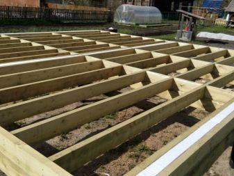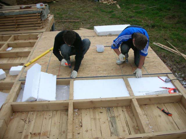 Wenn eine Wärmedämmung verwendet wird, werden die Abstände zwischen den Verzögerungen des fertigen Fußbodens an die erzeugte thermische Schicht angepasst.