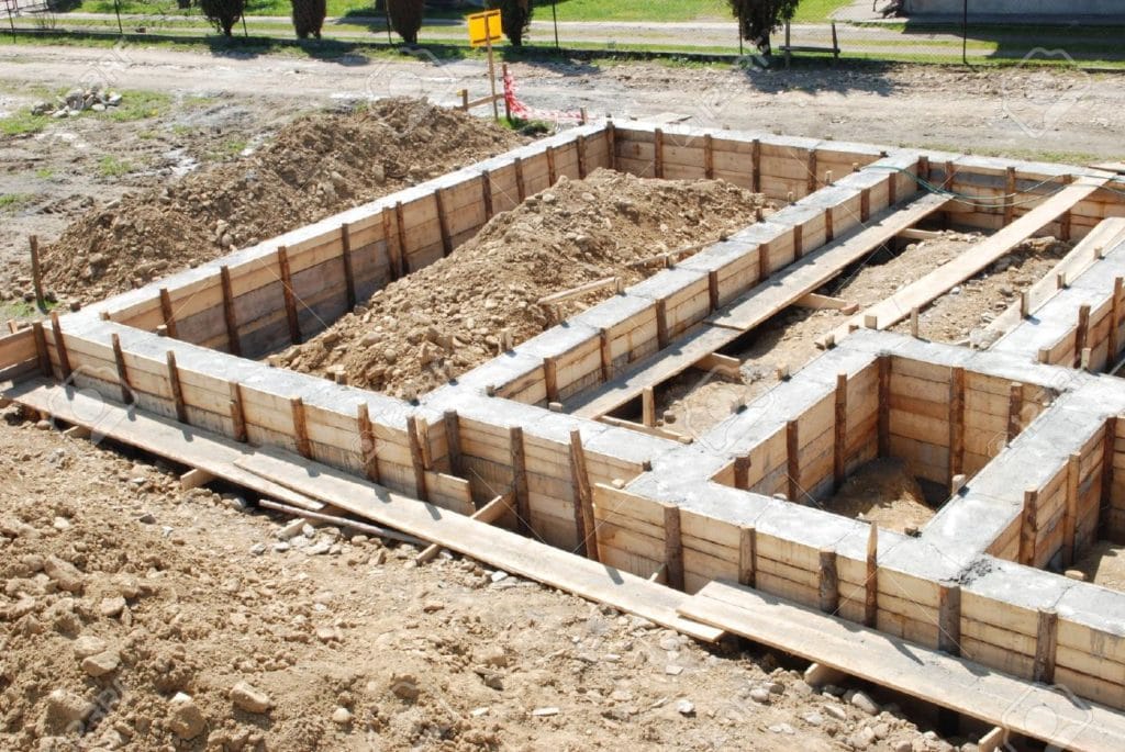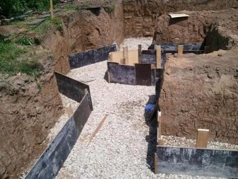 Starke Kordeln aus farbigen Stoffen helfen, die Markierungen zu vereinfachen.In Übereinstimmung mit dem Markup müssen Sie eine Kerbe unter dem Fundament graben, die 50 cm tiefer und 400 cm breiter als die vorbereitete Führung ist. Das Kissen besteht aus Sand, der reichlich mit Wasser gefüllt und gerammt wird. Überlappen Sie dann die erste Schuttschicht. Die Abdichtung erfolgt auf den Seitenflächen des Grabens. Dachdeckungsmaterial wird traditionell verwendet, obwohl es zunehmend durch ein moderneres Penetron ersetzt wird.
