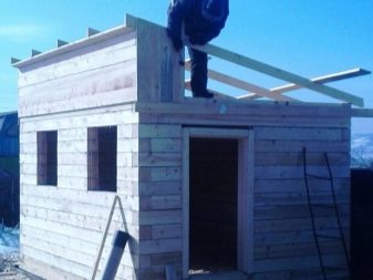In anderen Fällen, legen Sie das Gitter der Schienen, deren Dicke variiert von 2,5 bis 3 cm.In jedem Fall sollte diese Dicke natürlich in ihrer Gesamtheit einheitlich sein. Es empfiehlt sich, die Bäder mit Pultdächern mit Ondulin, Wellblech oder weichen Fliesen zu überlappen. Wenn es eine einfache Decke am Boden gibt, ohne Dachboden oder Dachboden, ist es erforderlich, eine Platte oder eine gerollte Isolierung zu verlegen. Unabhängig von dieser Verwendung: