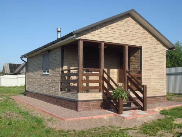 Die Fertigstellung der Außenwände hilft Entwicklern und Designern, ihren Geschmack und ihre ästhetischen Prioritäten auszudrücken. Oft versuchen sie, Abstellgleis, Schindel zu ummanteln. Etwas populärer sind diese Materialien dem Blockhaus und dem Pflaster unterlegen.