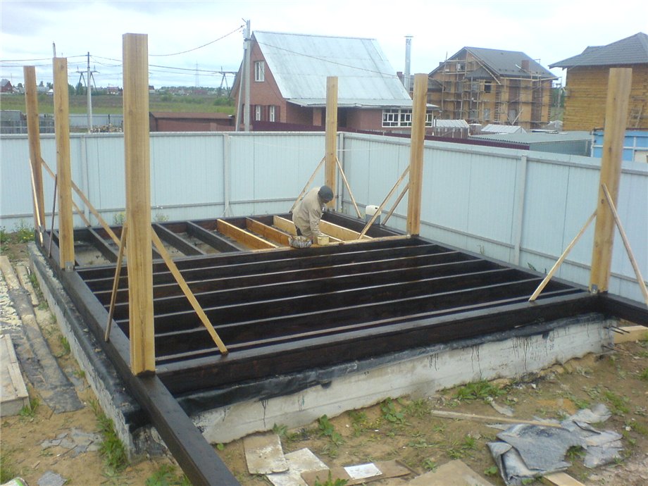 Bei der Konstruktion von zwei Stockwerken ist der erste Schritt die Schaffung der Gründung der Stützpfeiler, und die Basis muss mit einer Schicht der Wasserabdichtung bedeckt werden.Experten empfehlen, ein Fachwerksystem aus einem Bad aus Brettern mit einem Querschnitt von 10x5 cm zu bauen, und ein Brett mit einer Dicke von 2,2 cm geht normalerweise zur Kiste.