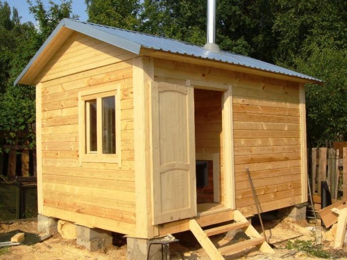 Die Gebäude sind relativ leicht, selbst wenn sie in den Dimensionen 6 mal 4 oder 6x6 m hergestellt werden. Wenn die Größe der Struktur 3x4, 4x4 m ist, manifestiert sich dieser Umstand noch mehr.Daher müssen keine soliden Grundlagen vorbereitet werden. Sie können gleichzeitig die Außen- und Innenwände beschneiden, und die Gesamtgeschwindigkeit der Installation erhöht sich deutlich. Die kleinste Fläche des Dampfbades beträgt 250 x 250 cm Es wird empfohlen, Asbestzementrohre mit einem Durchmesser von 100 und einer Länge von 4000 mm zu verwenden, die mit Beton gefüllt sind.