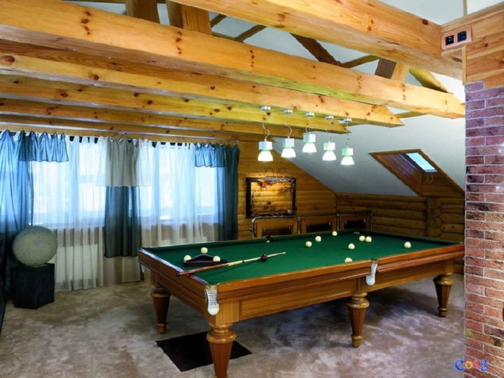 Das zweistöckige Bad übertrifft das einstöckige nur, weil es Ihnen ermöglicht, zusätzlichen Raum für Wohnen und Freizeit zu organisieren. Oft gibt es Zimmer für Gäste, Schlafzimmer, Tische für Billard oder andere Sportgeräte.