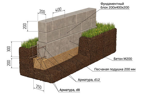 Bänder mit geringer Tiefe sollten nicht an verschiedenen Hängen verwendet werden, da sie einer starken Scherung nicht standhalten.Wenn sie auf staubigem Sand oder Hügeln gebaut werden, legen sie eine Erweiterungsplatte an den Boden. Richtig ausgeführter Monolith hat immer eine größere Höhe als Breite. Außerdem beträgt der Unterschied 2-4 mal; Solch ein Schritt wird den Keller Teil der Struktur optimal machen, es wird möglich sein, sowohl die Überlappung der Balken als auch des Erdgeschosses zu bilden.