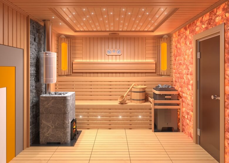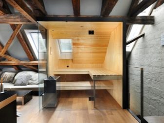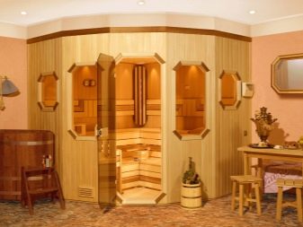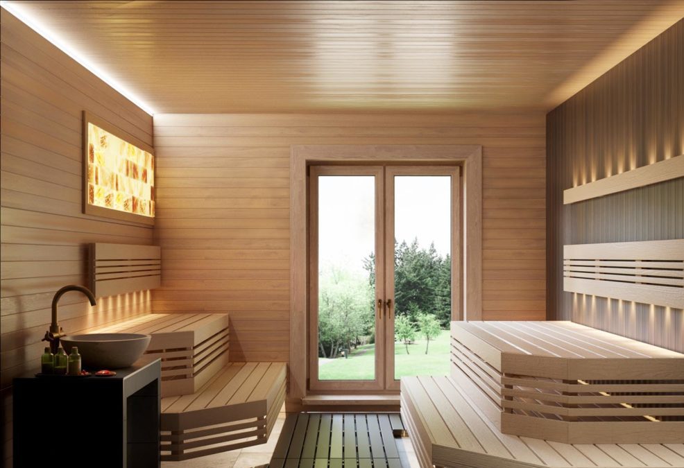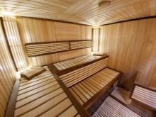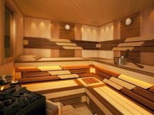 Die Sauna hat ihre eigenen Eigenschaften, die mit den Temperatur- und Feuchtigkeitsbedingungen verbunden sind. Eine moderne Sauna umfasst normalerweise mehrere Räume: ein Dampfbad, eine Dusche oder ein Bad, einen Ruheraum oder ein Ankleidezimmer mit einem Ankleidezimmer. Die Anzahl der Zimmer kann variieren: Ein Pool, ein Billardzimmer, ein Raum für SPA-Prozeduren werden hier hinzugefügt.. Oder je nach Bereich: Der Ruheraum ist mit dem Duschraum verbunden, für eine Heimsauna genügt ein einziger Raum - Dampfbäder und Duschkabinen im Badezimmer.