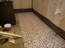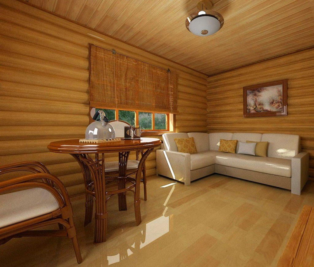 Die Fußböden im Aufenthaltsraum können auch aus Fliesen bestehen, jedoch ist es besser, wenn der Fußboden aus Holzbrettern besteht. Der Ruheraum hat einen universellen Zweck, daher kann hier Linoleum verwendet werden.