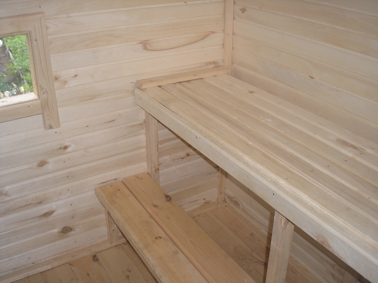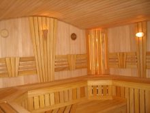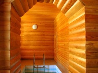 Die Wände der Sauna, komplett aus Holz oder Holz, fast benötigt keine Inneneinrichtung, wenn der Rahmen aus Zeder, Lärche, Espe oder Linde besteht. Diese langlebigen Holzarten haben eine ausgezeichnete Feuchtigkeitsbeständigkeit, sind frostbeständig, haben eine angenehme helle Holzfarbe, diese ätherischen Öle wirken heilend.