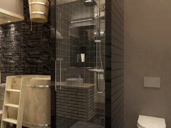 Dusche oder Dusche zeichnet sich durch hohe Luftfeuchtigkeit aus. Benötigt Futter mit guter Feuchtigkeitsbeständigkeit und Haltbarkeit, resistent gegen Schimmel und Schimmel, mit Anti-Rutsch-Wirkung und das Vorhandensein von dekorativen Qualitäten. Fliesen oder Keramikfliesen, natürliche oder künstliche dekorative Stein, Kunststoff-PVC-Platten erfüllen diese Qualitäten.