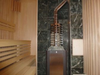 Der Ofen ist das Energiezentrum der Sauna. Moderne Hersteller bieten eine Vielzahl von Design-Öfen für jede Art von Kraftstoff. Ofen Design im russischen Stil beinhaltet Verkleidung Fliesen. Eine Fliese mit Fliesen erhöht die Brandsicherheit und verleiht dem Bad die Züge der königlichen Antike.