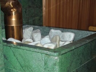 Experten empfehlen den Kauf von billigem Serpentin oder Serpentin, einem schönen grünlichen Stein mit MarmoradernEs hilft bei Kopfschmerzen, Erkältungen, Atemwegserkrankungen. Talköhlorit hält lange Wärme, hat eine angenehme und attraktive Textur, es ist angenehm, barfuß darauf zu gehen. Talköhlorit verbessert die Immunität, verbessert die Stimmung. Knackt nicht, schmilzt nicht. Einer der langlebigsten Steine.