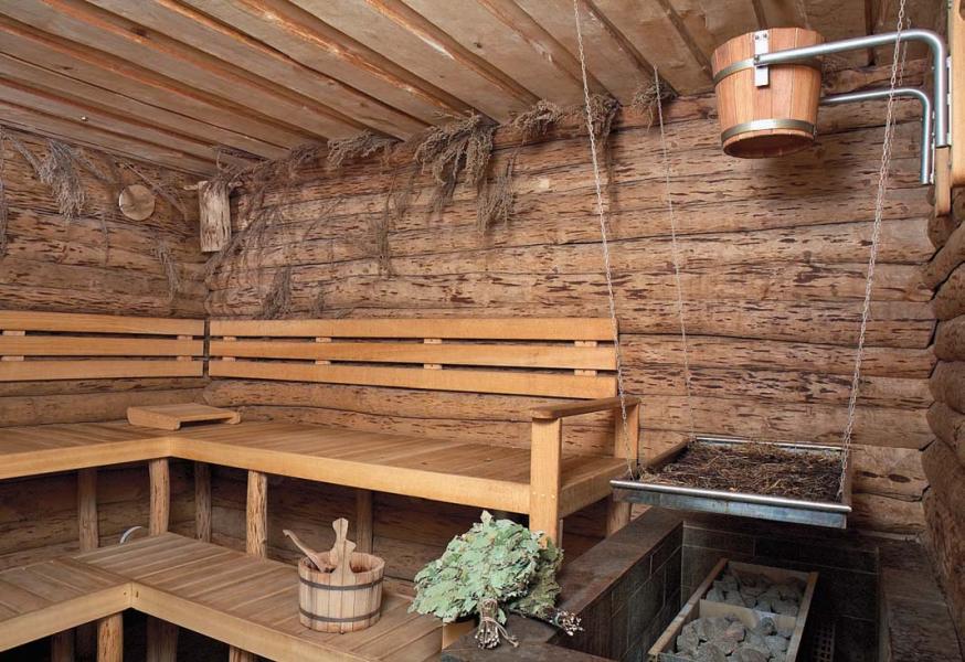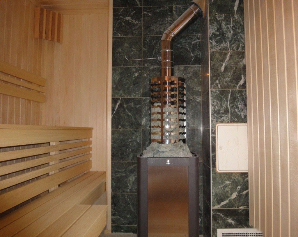Das Material ist stark gewählt, haltbar, mit einer glatten Oberfläche, rutschfest, nicht durch Hitze und Feuchtigkeit verformt, resistent gegen die Bildung von Pilzen. Es kann natürliches Holz für Wandverkleidung, Decke, Fußboden und hitzebeständiges Ziegelstein, Naturstein oder Ziegel für das Gegenüberstellen von Ofenheizung sein.