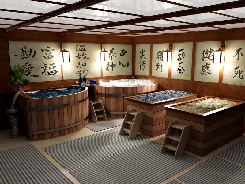 Kenner von Badeprozeduren rüsten die Sauna im japanischen Stil aus. Für den individuellen Gebrauch unterscheiden Bad Furaco und Ofuro.