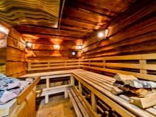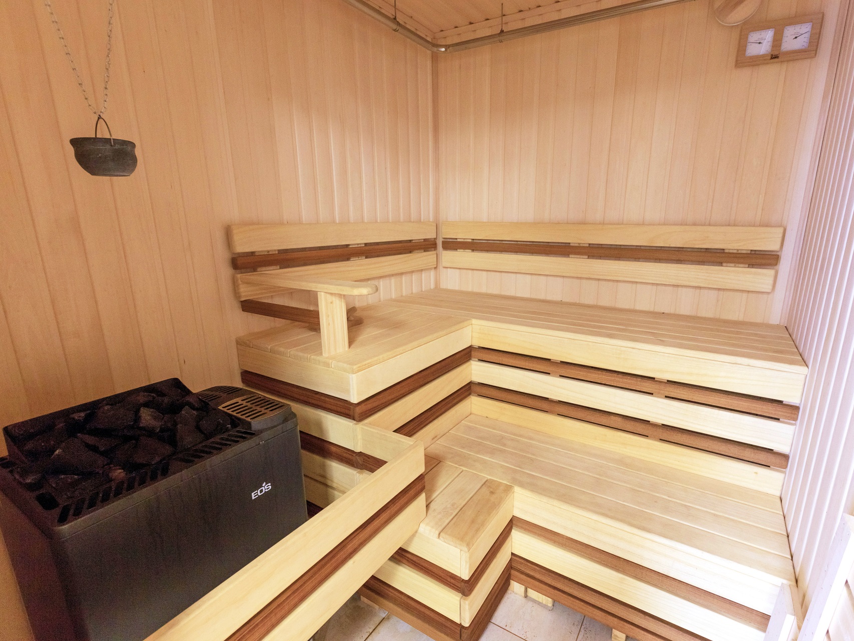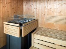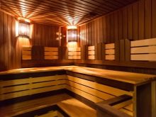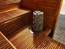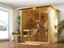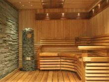 - Finnische Sauna - Ähnliche Strukturen gewinnen zunehmend an Popularität. Im Inneren wird die Temperatur bis zu +140 Grad gehalten, während die Luftfeuchtigkeit niedrig ist, nicht mehr als zehn Prozent. Es wird angenommen, dass eine solche starke Erwärmung eine positive Wirkung auf alle Körpersysteme hat.