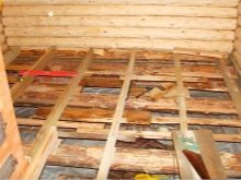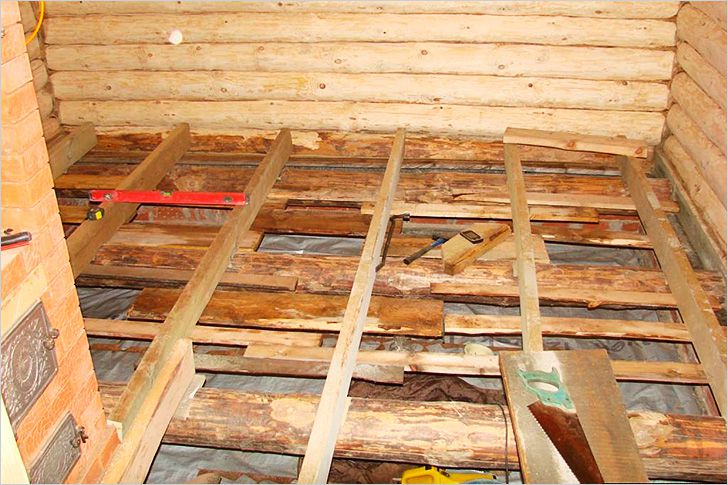 Als nächstes legen Sie einen rauhen Boden, dann eine Schicht von Hitze und Wasserabdichtung. Nach dem Verlegen der Diele.