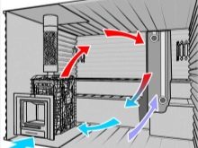 - die Öffnungen zum Einlass und zum Auslass sollten sich nicht gegenüberliegen, sonst entsteht ein Zug, und die Luft hat keine Zeit, andere Orte zu betreten;