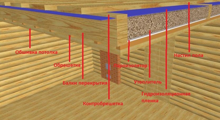 Nach dem Aufrichten der Sparren sind Dampfsperre, Wärmedämmung und die Beschichtung selbst ein Dachmaterial, Metallfliesen oder Schiefer.Der Schornstein wird unter Einhaltung der Sicherheitsanforderungen entfernt. Decke führen die gleiche Technologie wie die Wand durch. Es ist nicht mit Putz oder Farbe bedeckt, nur Holz wird verwendet.. Zur Isolierung wird Schaum verwendet, der auf mit Polyethylen und Holzbohlen überzogenen Brettern angeordnet wird. Die entstehenden Lücken sind mit Schaum gefüllt. Die Dampfsperre wird mit Folie aufgeklebt und mit einem Konstruktionshefter befestigt.