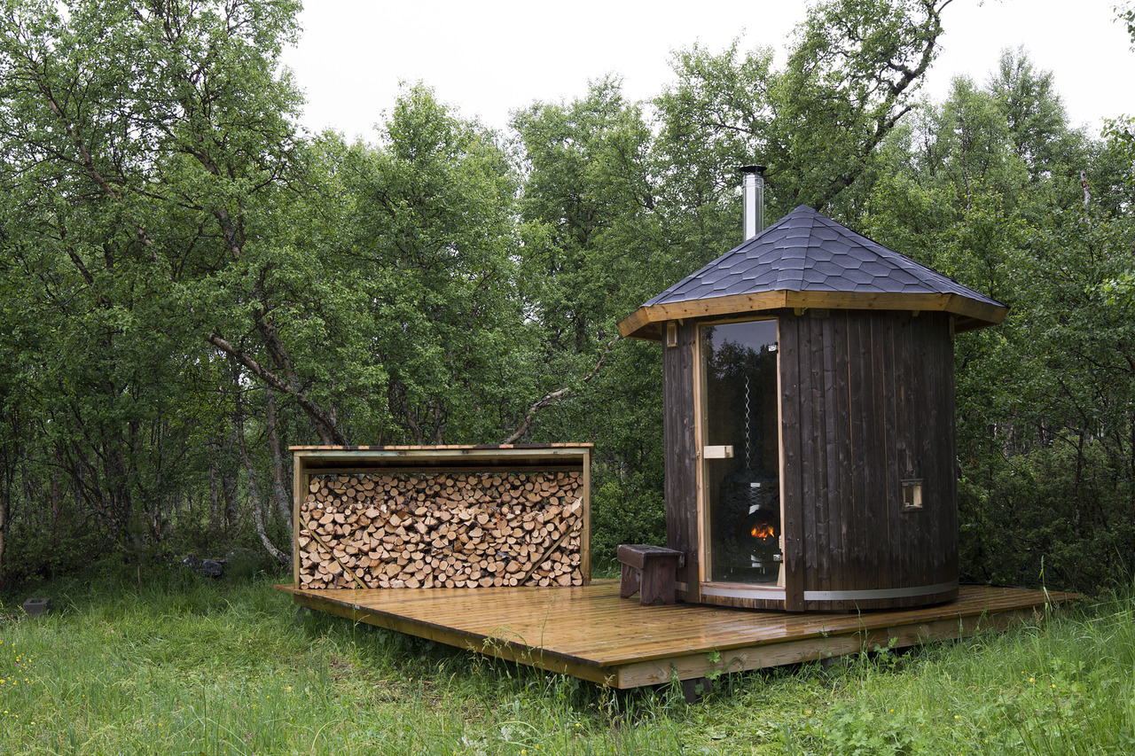 Das Design muss nicht groß sein. Solch eine kompakte Sauna ist perfekt für gelegentliche Erholung und Reinigung des Körpers.