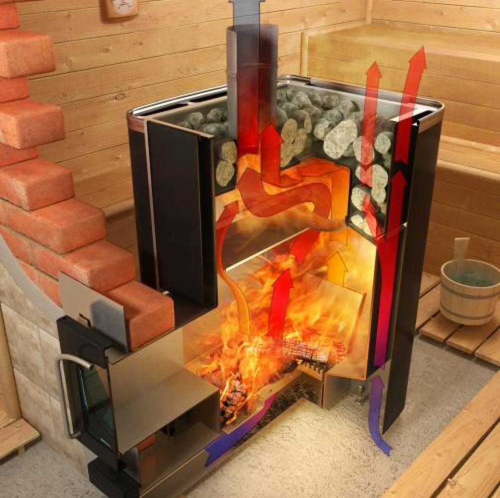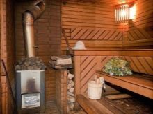- Heizung. Damit das Bad die gewünschte Temperatur leicht halten kann, müssen Sie sofort den Raum aufwärmen und gute Heizgeräte installieren. Vor allem lohnt es sich, in eine gute Wandbekleidung zu investieren. Richtig ausgewähltes Material macht das Dampfbad zu jeder Jahreszeit gemütlich und zur Entspannung geeignet. Aus den Heizungen können Sie jeden geeigneten auswählen: einen Kamin, einen Herd oder einen Ofen. Die beste Option ist kein Holzofen, sondern ein sparsamer elektrischer Kamin. Es funktioniert jederzeit, und das Heizen des Raumes mit einem solchen Kamin ist billiger, weil man kein Brennholz kaufen muss und sich um den Brandschutz sorgen muss.