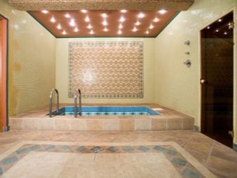 - Räume zu spenden. Der Hauptraum in jedem Bad ist ein Dampfbad. Ohne es kann einfach nicht. Daneben ist manchmal Platz für Ruhe. Dort können sie einen Billardraum, eine Bibliothek oder einen Versammlungsraum mit der Firma ausstatten. Aber es ist möglich, genau den Raum für Ruhe zu opfern. Um Platz zu sparen, können Sie statt einer vollständigen Wäsche eine kleine Dusche ausstatten. Es sollte nicht weniger Platz als nötig sein, damit mindestens eine Person bequem sitzen kann. In einigen Fällen ist es möglich, die kombinierte Option zu berücksichtigen, wenn die Wäsche mit dem Badezimmer kombiniert wird, so dass später in der Kälte nicht in das Haus gerannt werden muss.
