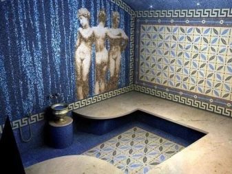 - Hamam Die letzte Art von Bad ist Türkisch. Es gehört zur Kategorie Wasser. Ein Zimmer dieser Art eignet sich am besten für diejenigen, die nicht mögen oder aufgrund ihrer Gesundheit nicht hohen Temperaturen ausgesetzt sind. Der Hauptteil des Hammams ist ein großer Pool mit heißem Wasser. Bis der Badebesucher jedoch in dieses Becken gelangt, muss er in mehrere Becken mit kälterem Wasser tauchen.