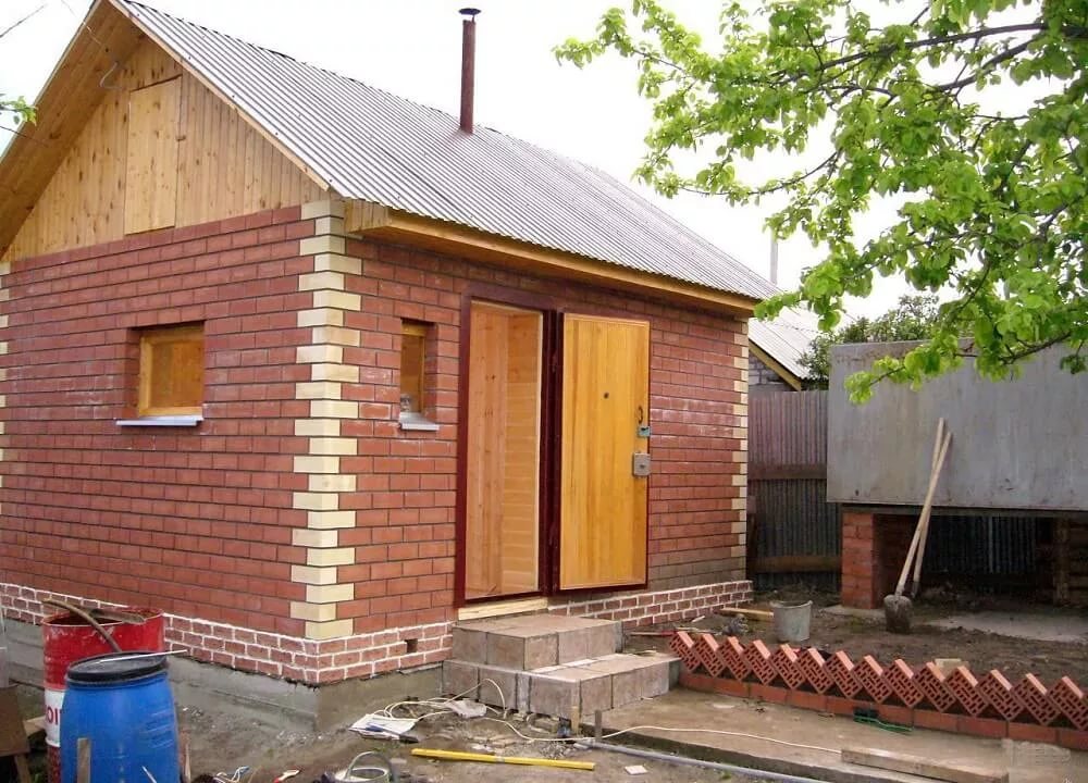 - Ziegelstein Die gebräuchlichste Option ist ein Backsteingebäude.Dieses Material ist nicht nur feuerfest, sondern auch resistent gegen hohe Luftfeuchtigkeit. Darüber hinaus, Ziegelbauten und sehen sehr stilvoll aus. Dies ist ein universelles Material, das niemals an Relevanz verliert.