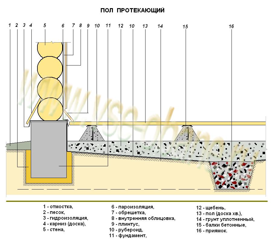 - Übrigens Besondere Aufmerksamkeit sollte dem Boden geschenkt werden im Bad. Es ist am besten, sie zu verdoppeln. Wenn eine Heizung zwischen zwei Schichten des Bodens verlegt wird, ist es viel bequemer, sich in den Räumen auszuruhen.