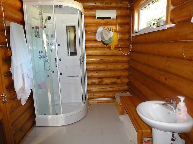 - Holz. Oft für den Bau eines Bades wählen Sie eine Bar. Dieses Zeug ist besonders gut. Naturholz ist absolut gesundheitlich unbedenklich und hält die Wärme im Innenbereich gut. Wenn die Zimmer mit einer Bar ausgestattet sind, schwebt ständig ein angenehmer holziger Duft im Bad. Der einzige Nachteil solcher Gebäude ist die Fragilität. Das Holz reagiert selbst nur schlecht auf konstante Temperaturschwankungen und hohe Luftfeuchtigkeit. Daher ist es notwendig, das Holz weiter zu verarbeiten und diese Schutzschicht regelmäßig wieder herzustellen. Aber eine Bar mit Lack zu lackieren oder zu beschichten, ist es definitiv nicht wert, um ihr natürliches Aussehen nicht zu beeinträchtigen.