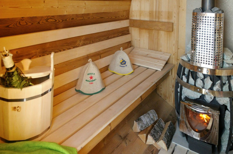 - Finnisch. Diese Art von Dampfbad wird auch als Sauna bezeichnet. Finnische Sauna besteht aus einem Raum. Es wird mit heißem Dampf erhitzt. Die Luftfeuchtigkeit im Raum ist auf ein Minimum reduziert.