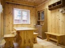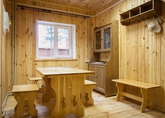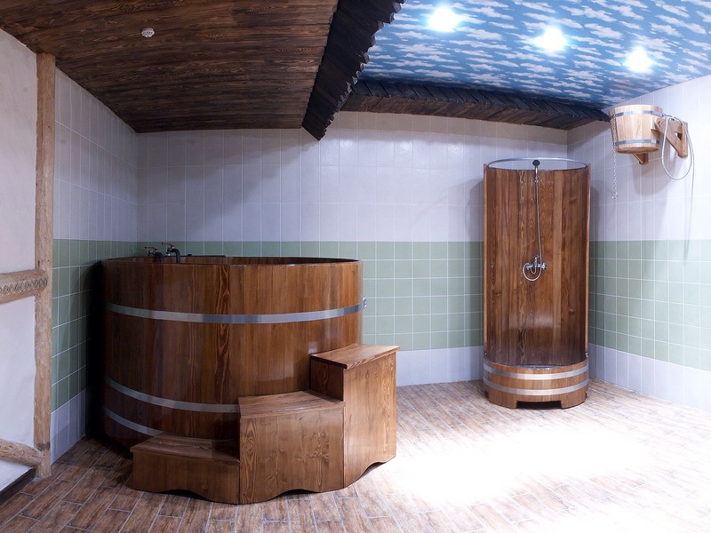 Für die Innenausstattung des Bades werden nur natürliche Materialien verwendet, hauptsächlich aus Holz. Gut hält warm und schön Futter: