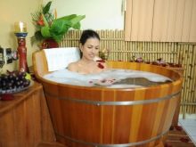 Das Fass ist für mehrere Personen ausgelegt, so dass das Verfahren für eine Person bequem genug ist, um in einer liegenden Schriftart zu sitzen. Dieses Verfahren bietet eine wohltuende Wirkung auf die Gesundheit, die die Poren öffnet, Giftstoffe aus dem Körper entfernt und Stoffwechselprozesse anregt. Furaco dient auch zur Vorbeugung von Herz-Kreislauf-Erkrankungen und Problemen im Urogenitalsystem.