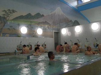 Sento ist ein öffentliches Bad in unserem Verständnis, mit bunten nationalen Eigenschaften. Äußerlich ähnelt Sento einem japanischen Tempel, in dem sich ein Pool mit heißem Wasser befindet. Der Raum ist in zwei Teile geteilt - die männliche und die weibliche Hälfte, dekoriert mit nationalen Gemälden, Hieroglyphen, Gemälden japanischer Vulkane, Wasserfällen, Kirschblüten. In der weiblichen Hälfte gibt es viele Spiegel, es gibt auch Wickeltische für Mütter mit Babys.