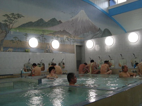 Die Ausnahme ist Sento, wo der Boden und der Pool meistens mit Keramikfliesen gefliest sind und die Wände mit Spiegeln verziert werden können.
