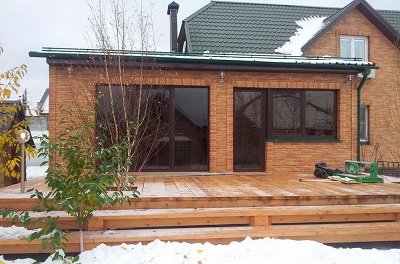 Wenn die Grundstücksfläche es zulässt, wäre die beste Option ein separates Gebäude für das Bad. Aus Gründen des Brandschutzes sollte es in einiger Entfernung vom Haus und anderen Nebengebäuden liegen. Unter Berücksichtigung aller Regeln und Vorschriften ist es jedoch durchaus möglich, ein Bad an der Garage im ersten Stock des Hauses zu befestigen.