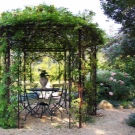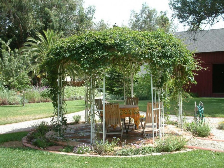 Arbor ist am besten auf einem Hügel gelegen, umgeben von Laub- oder niedrigen Nadelbäumen. Es ist nicht ganz angemessen und harmonisch, dieses Gebäude am Zaun an der Grenze des Geländes zu betrachten. Es ist am besten, es in die Tiefen des Gartens zu legen.