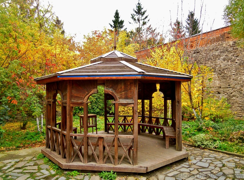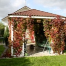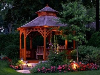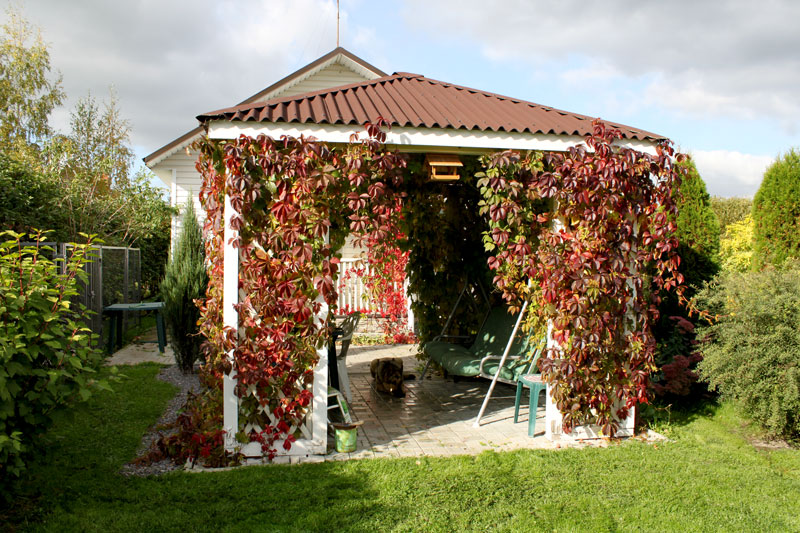 Ein kleiner gemütlicher Pavillon wird harmonisch von Gartenpflanzen und Blumen umgeben. Natürlich ist das eine Frage des Geschmacks, und die Größe der Website lässt nicht immer irgendwelche Anforderungen zu.