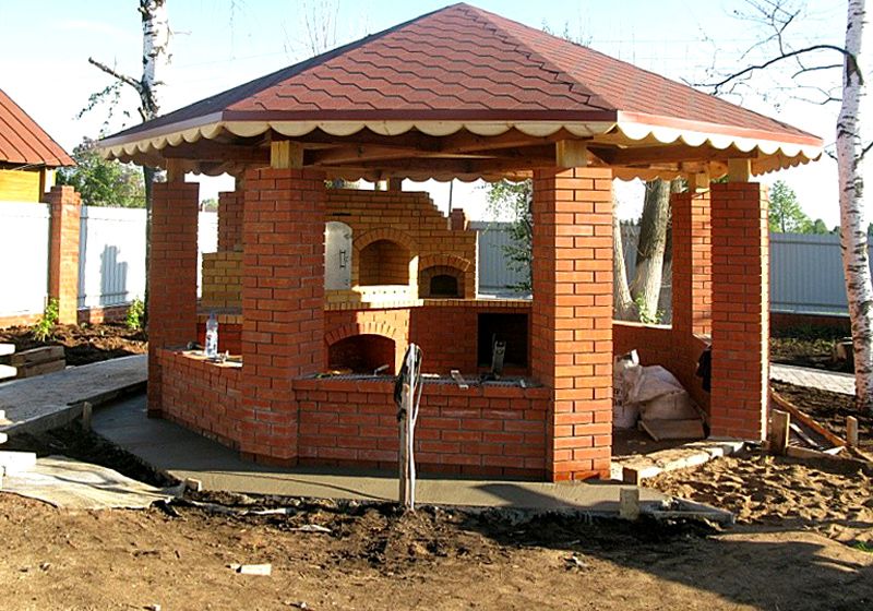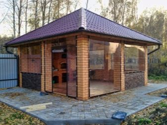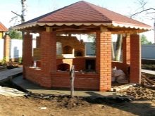 Brick Pavillons - nicht ganz der übliche Anblick, aber sie haben ihre Vorteile. Sie sind langlebig, langlebig, keine Angst vor Temperatur- und Umwelteinflüssen, und auch ziemlich dekorativ. Wenn Sie eine geschlossene Struktur ausführen, erhalten Sie ein vollwertiges Landhaus, in dem Sie in der Wintersaison bequem Zeit verbringen können.